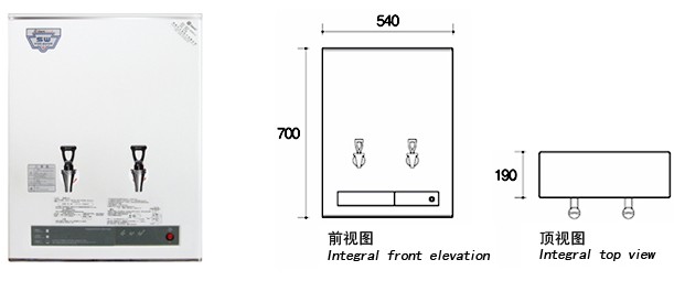 外形尺寸(長X深X高):540×190×700mm ? 額定功率:6KW 額定電流:9.1A 額定電壓(AC):380V 推薦電源:三相五線 容??? 積:40L ? 連續供開水量(5磅暖瓶):22