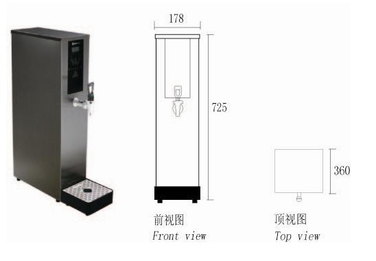 外形尺寸(長(zhǎng)X深X高):178×360×725mm 額定功率:4KW 額定電流:18.2A 額定電壓:220V 推薦電源:25A插座 容??? 積:20L 一次性熱水出水量(L):15L ?