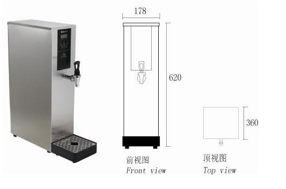 外形尺寸(長X深X高):178×360×620mm 額定功率:3KW 額定電流:13.6A 額定電壓:220V 推薦電源:16A插座 容??? 積:15L 一次性熱水出水量(L):12L ?