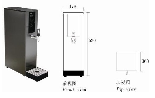 外形尺寸(長(zhǎng)X深X高):178×360×520mm 額定功率:2KW 額定電流:9.1A 額定電壓:220V 推薦電源:10A插座 容??? 積:10L 一次性熱水出水量(L):6L ?